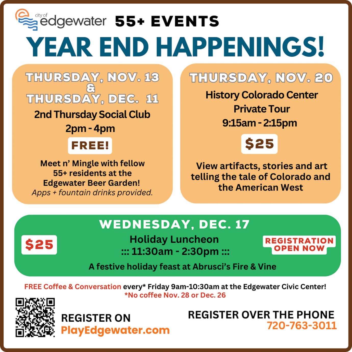 55+ Social Club. Edgewater Beer Garden