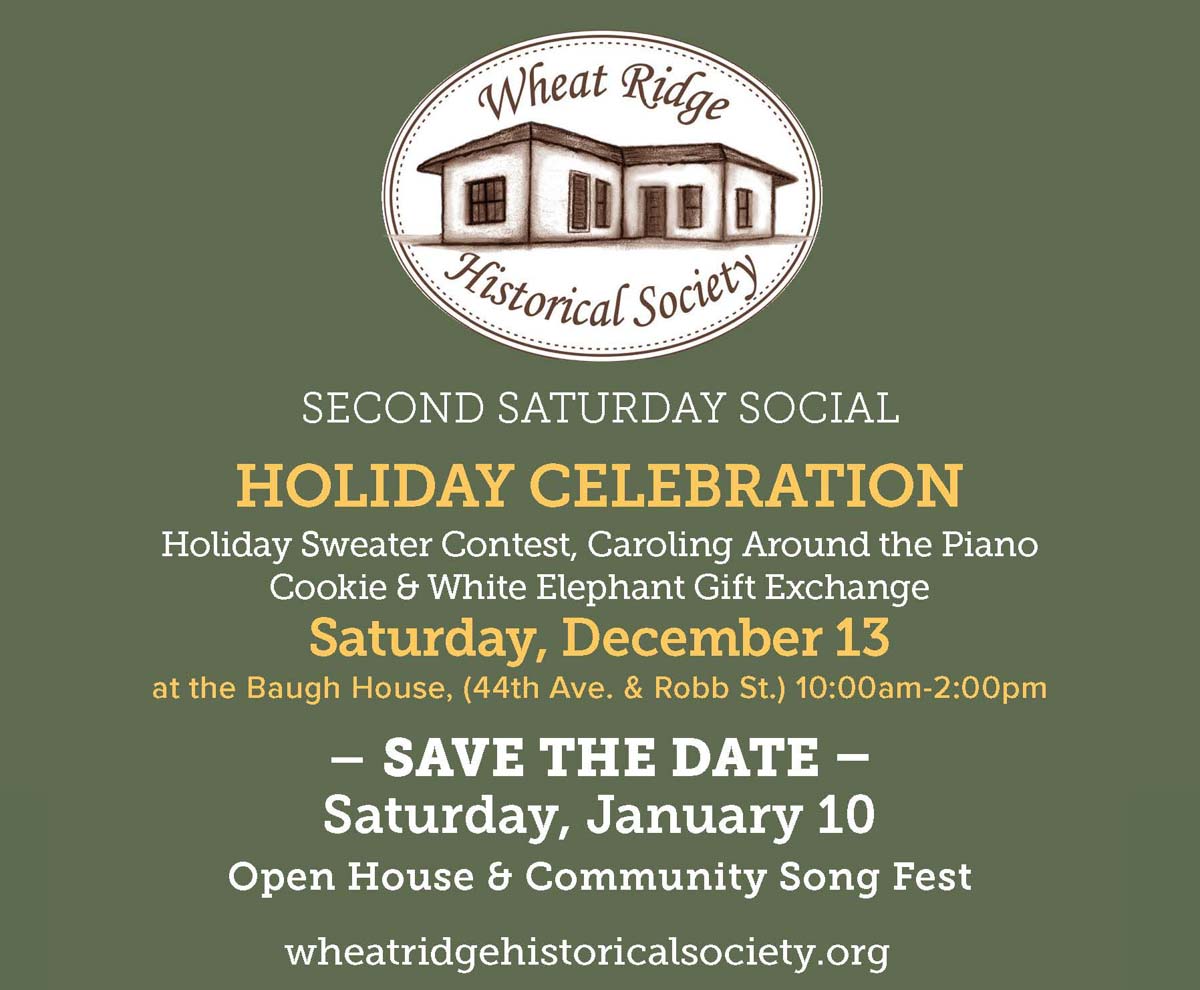 December 13 (10:00 AM – 2:00 PM): Wear your favorite holiday sweater for a contest! Features treats, a cookie exchange (bring 12-18), and a White Elephant gift exchange. Enjoy carols around the piano. (Location not specified in original text, please check local listings).